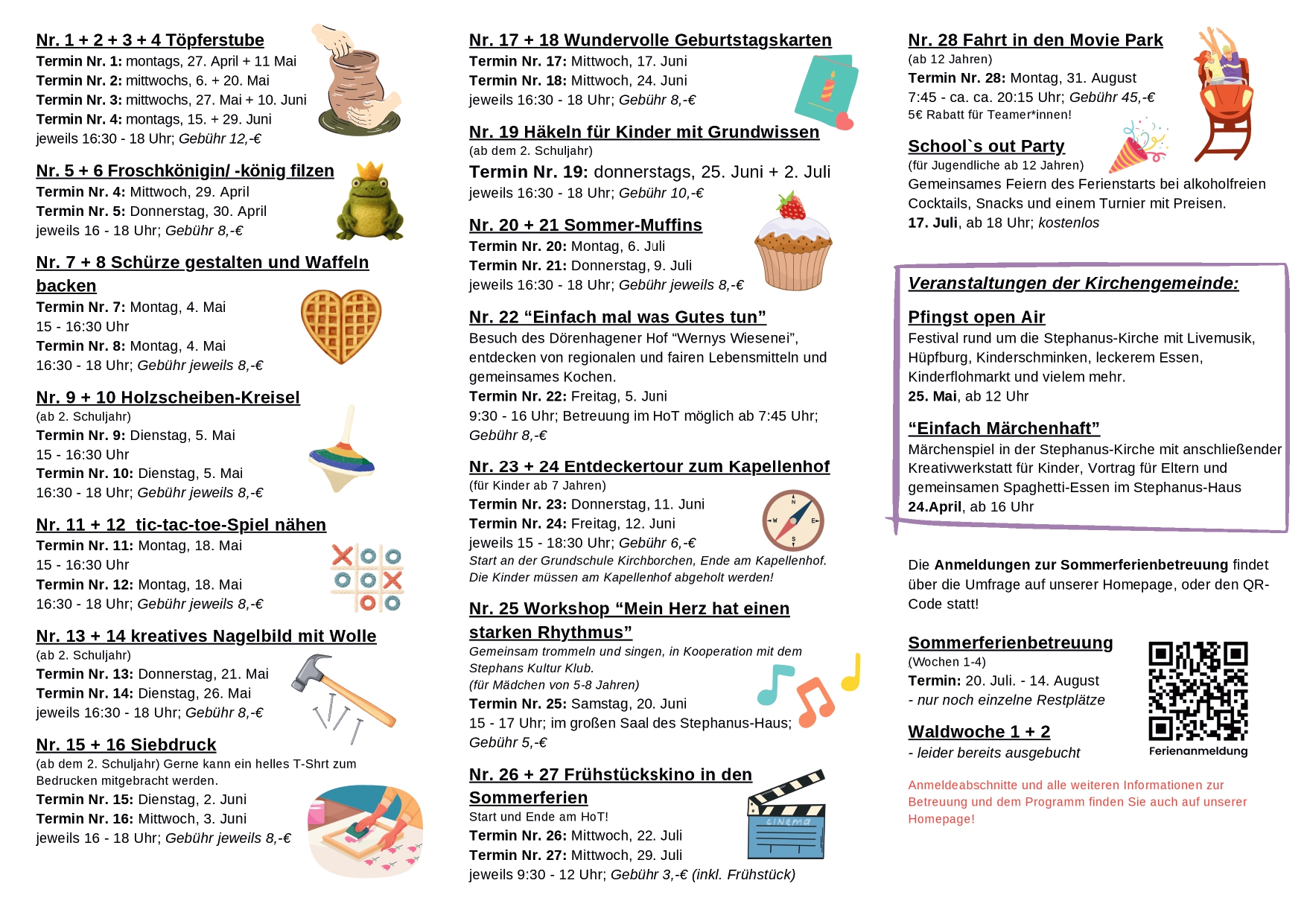 Bei dem Langschläfer-Frühstück, dem Osterkino, der Kinderbibelwoche + Betreuung und der Fahrt in den Movie-Park sind Anmeldungen noch möglich.